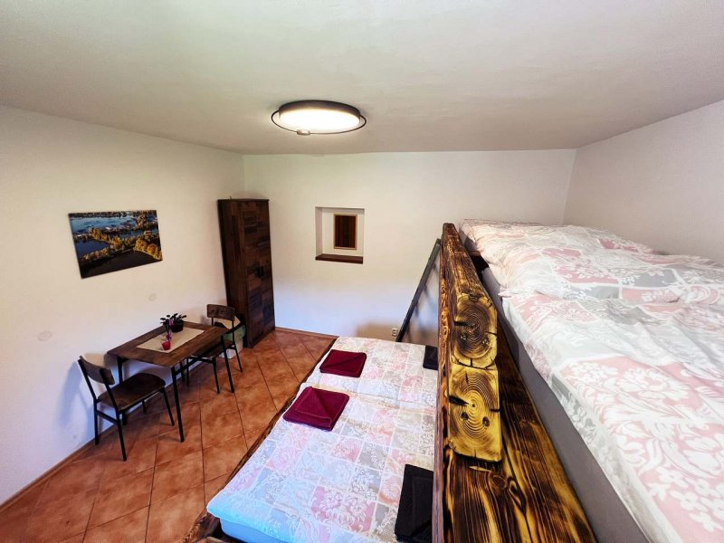 Chalupa v obci Třeboň - Branná: 3 ložnice, max. 12 osob. Orientační cena (za apartmán za týden): léto 9.000kč.