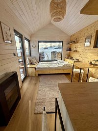 Uvnitř vás čeká elegantní interiér s kvalitními materiály, pohodlné dvoulůžko, promyšlené osvětlení a útulný prostor pro odpočinek. Vlečka je o jednoduchosti, která působí luxusně, a o pohodlí, které nechce nic dokazovat.