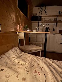 Původní vůz za traktor jsme proměnili v stylové a pohodlné útočiště, kde se venkovská atmosféra snoubí s nečekaným komfortem. Každý detail interiéru je navržený tak, aby vám poskytl maximální pohodu a pocit výjimečnosti.