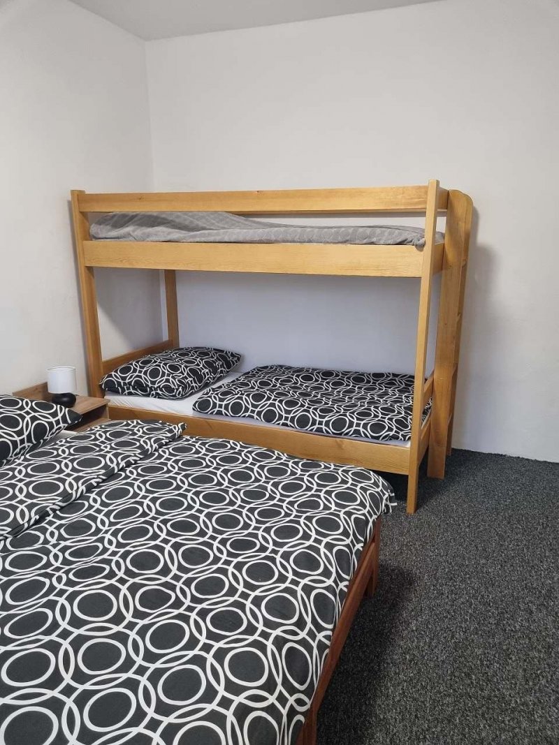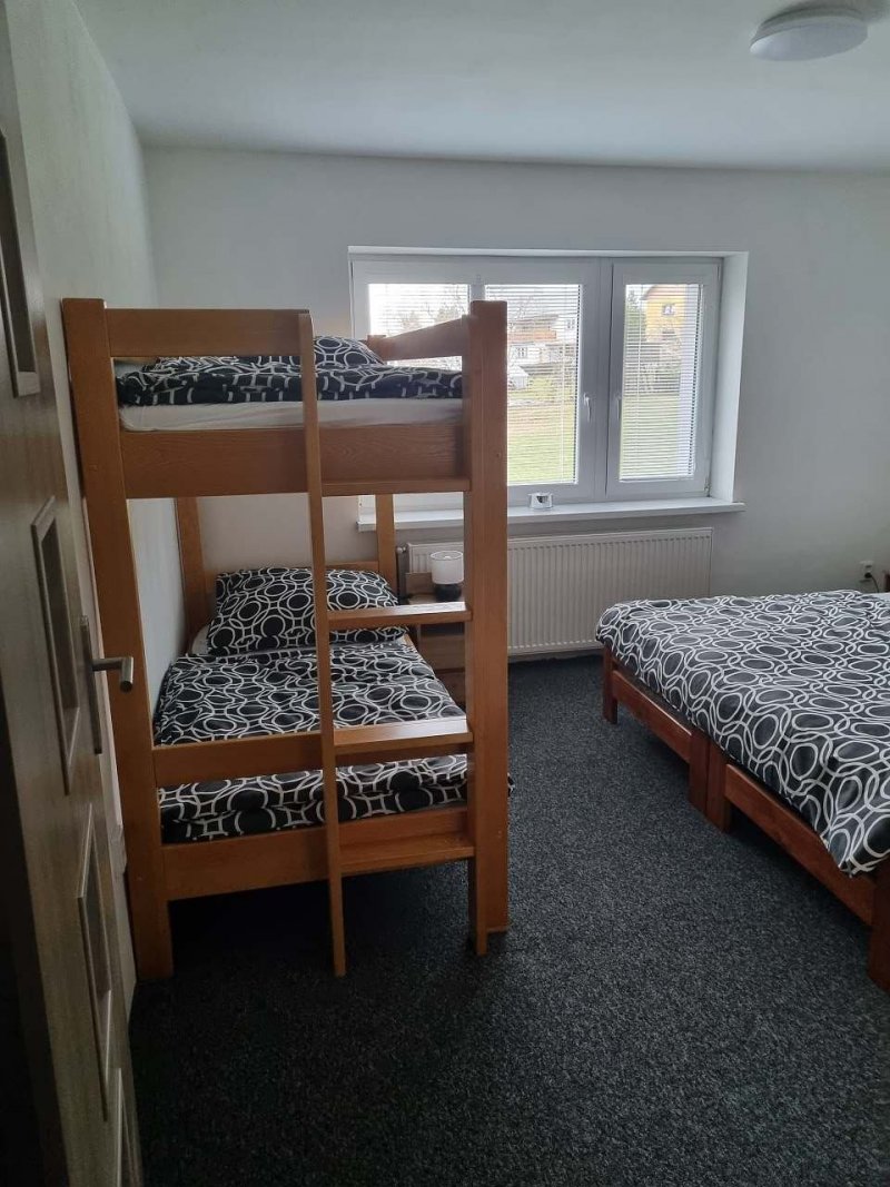 Naše chalupa nabízí pohodlné a útulné ubytování pro vaši rodinu či přátele. V domě najdete čtyři pokoje – tři čtyřlůžkové a jeden dvoulůžkový, ideální pro větší skupiny i menší rodiny. Součástí je prostorná kuchyně s jídelnou, dvě moderní koupelny vybavené sprchovým koutem, umyvadlem a WC.