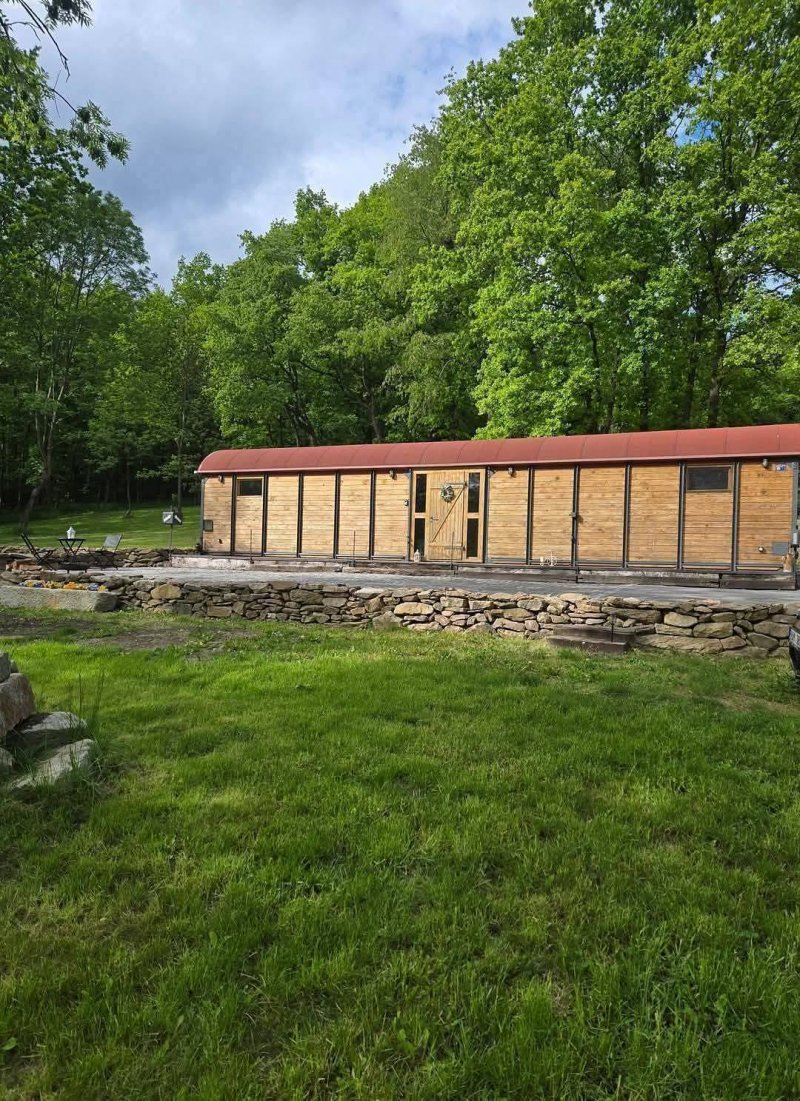 Nabízíme k pronájmu - jedinečný celoročně obytný vagon s rozsáhlou částečně oplocenou zahradou nacházející se ve Středočeském kraji v oblasti Pod Blaníkem na samém konci malé vesničky Hrajovice. Vagon nabízí veškerý komfort včetně sprchového koutu s teplou vodou splachovací WC a klimatizaci fungující zároveň v zimních měsících jako topení. V kuchyni je možné připravit jídlo na indukčním vařiči nebo venku opéct buřty na kovovém ohništi. Místní příroda vybízí k pěším výletům či jízdě na kole. V prostoru vagonu se nachází ložnice, obývací prostor a kuchyňský kout, koupelna a WC je oddělené v zadní části vagonu. Obsazení vagonu jsou maximálně 4 osoby v prostoru se nachází manželská postel a rozkládací sedačka pro 2 osoby.