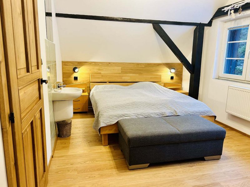 Nabízíme rodinné ubytování v krásné chalupě u Vrbenského potoku, obklopenou malebnou krajinou Rychlebských hor. 3 km od Ski areal Paprsek. Ideální ubytování pro dvě rodiny s dětmi, které zde budou mít každý své soukromí. Sauna, krb, posezení s grilem a ohniště, udírna, trampolína, pískoviště jsou součástí vybavení.