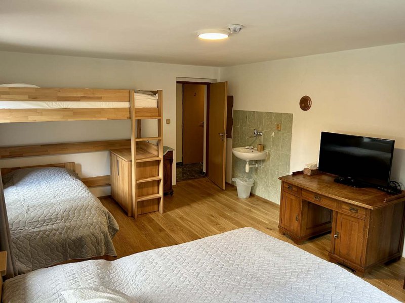 Apartmán v obci Velké Vrbno: 4 ložnice, celkem pro 4 až 12 osob. Orientační cena (apartmán za noc): léto 4.490kč, zima 4.690kč.
