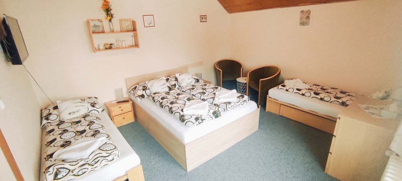 Penzion v obci Vrchlabí: 8 pokojů, celkem pro 1 až 25 osob. Orientační cena (za osobu za noc): celoročně 500kč.