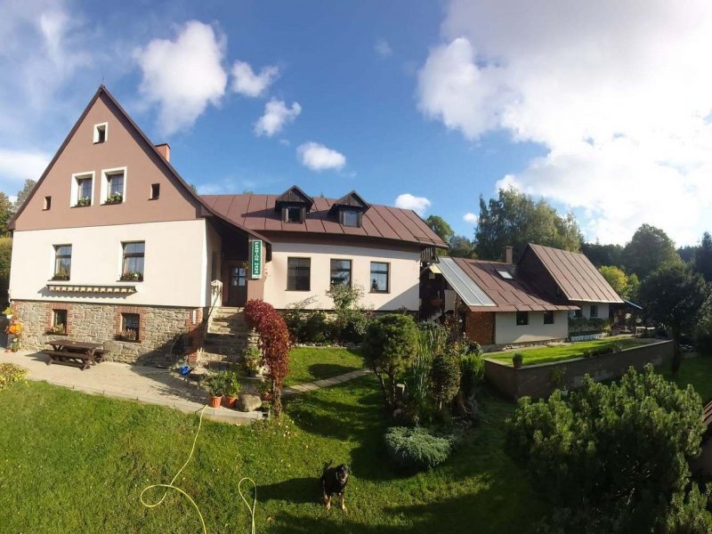 Penzion v obci Strážné: 8 pokojů, celkem pro 1 až 36 osob. Orientační cena (za osobu za noc): léto 550kč, zima 600kč.