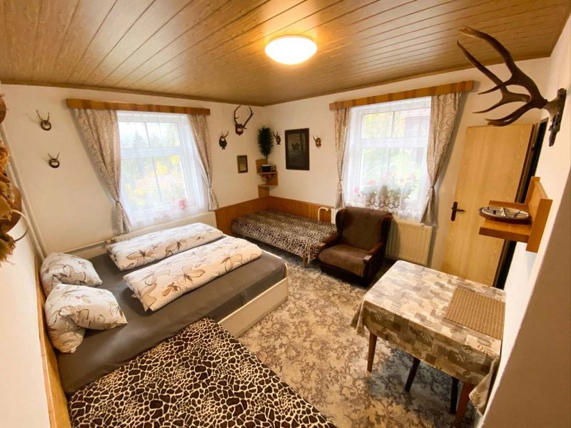 Chata v obci Strážné: 4 ložnice, celkem pro 1 až 15 osob. Orientační cena (za pokoj za noc): celoročně 1.600kč.