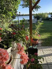 PENSIONEK - DUM PRO ROD. REKREACI - se nachází přímo u jezera s vlastním posezením v zahradě před domem a parkovištěm. Dům má 3x ložnice a 3 x koupelny s WC a sprchou na pokoji. V domě je i kuchyňka, místnost s posezením a barem, jídelna, kde jsou 2 stoly a odtud je vchod do dvora, kde je uzavřené posezení. Před domem u vody v zahrádce je uzamykatelný plechový domek na kola. U vody je možnost posezení, grilování, opalování apod. Dům je vhodný i pro lidi v důchodovém věku, vzhledem k tomu, že je dům bez schodů a je přízemní. V zahradě před domem je relaxační pohled na Pálavu a vodu a odpočinek no prostě SUPER :-)