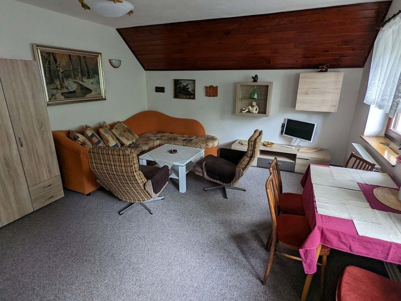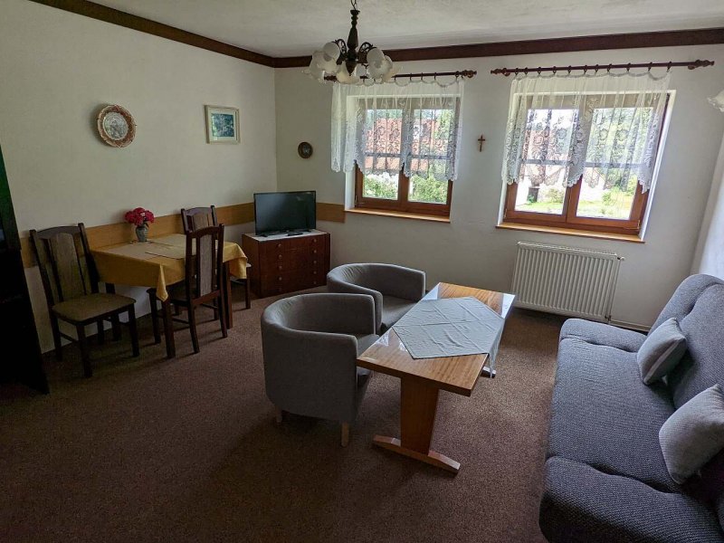 Chalupa v obci Mláka: 4 ložnice, celkem pro 4 až 8 osob. Orientační cena (za osobu za noc): léto 350kč.