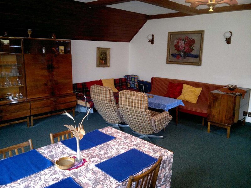 Chata v obci Pístina: 4 ložnice, max. 13 osob. Orientační cena (chata za týden): celoročně 30.000kč.