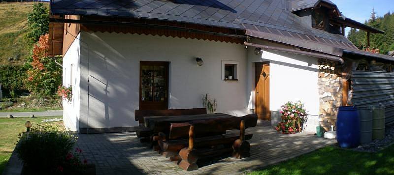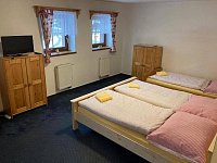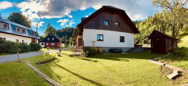 Chata v obci Petříkov: 3 ložnice, max. 12 osob. Orientační cena (chata za týden): léto 21.000kč, zima 23.000kč.