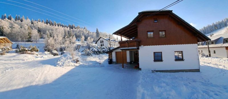 Apartmán v obci Ostružná: 5 ložnic, celkem pro 2 až 17 osob. Orientační cena (za osobu za noc): celoročně 790kč.