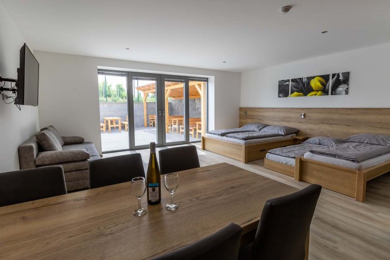 Rodinný Penzion Honzy nabízí příjemné ubytování v novém soukromém penzionu v klidném prostředí na okraji obce Bavory pod Pálavskými kopci. Objekt poskytuje ubytování až pro 24 osob ve čtyřech studiových apartmánech, každý o velikosti 46m² s vlastním sociálním zařízením a kuchyňským koutem. U penzionu se nachází uzamykatelný prostor na kola. Pro večerní posezení i firemní akce: V suterénu našeho penzionu najdete vinný sklep, kde se kromě prostor pro zrání vína a archivu nachází i příjemné vyhřívané prostory pro posezení u skleničky vína, firemní akce, nebo rodinné oslavy. Kapacita je 24 - 30 osob.