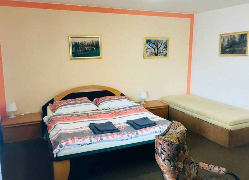Penzion v obci Luhačovice: 6 pokojů, celkem pro 1 až 15 osob. Orientační cena (za apartmán za noc): léto 1.700kč, zima 1.500kč.