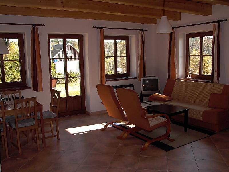 Jedná se o nově postavený dům se dvěma samostatnými apartmány, které je možné propojit. Každý apartmán má venkovní terasu se zahradním nábytkem a krbem, ohništěm. Dům je v samém srdci Jizerských hor, v osadě Mariánská hora. Jeho poloha, 710m n. m., je ideální pro pěší a cykloturistiku v létě a výlety na běžkách v zimě. Pro vyznavače sjezdového lyžování je k dispozici ski areál Tanvaldský Špičák (vzdálený 600m), nebo menší sjezdovky s vleky v okolí domu (100m).