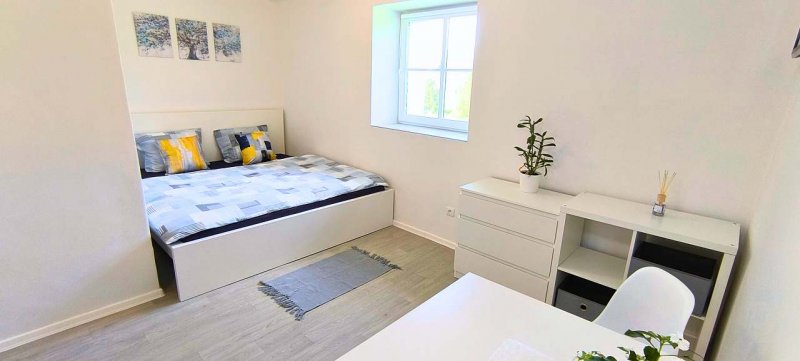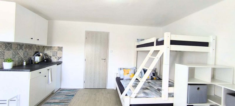 Apartmán v obci Černá v Pošumaví: 1 ložnice, celkem pro 2 až 4 osoby. Orientační cena (za osobu za noc): léto 350kč.