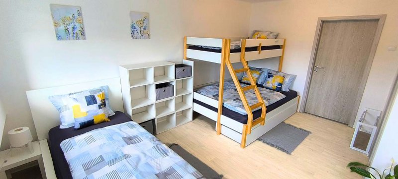 Apartmán v obci Černá v Pošumaví: 10 ložnic, max. 30 osob. Orientační cena (za apartmán za noc): celoročně 2.500kč.