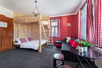 Chalupa v obci Kořenov - Horní Polubný: 5 ložnic, celkem pro 1 až 17 osob. Orientační cena (za apartmán za noc): celoročně 2.500kč.