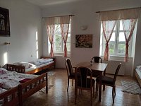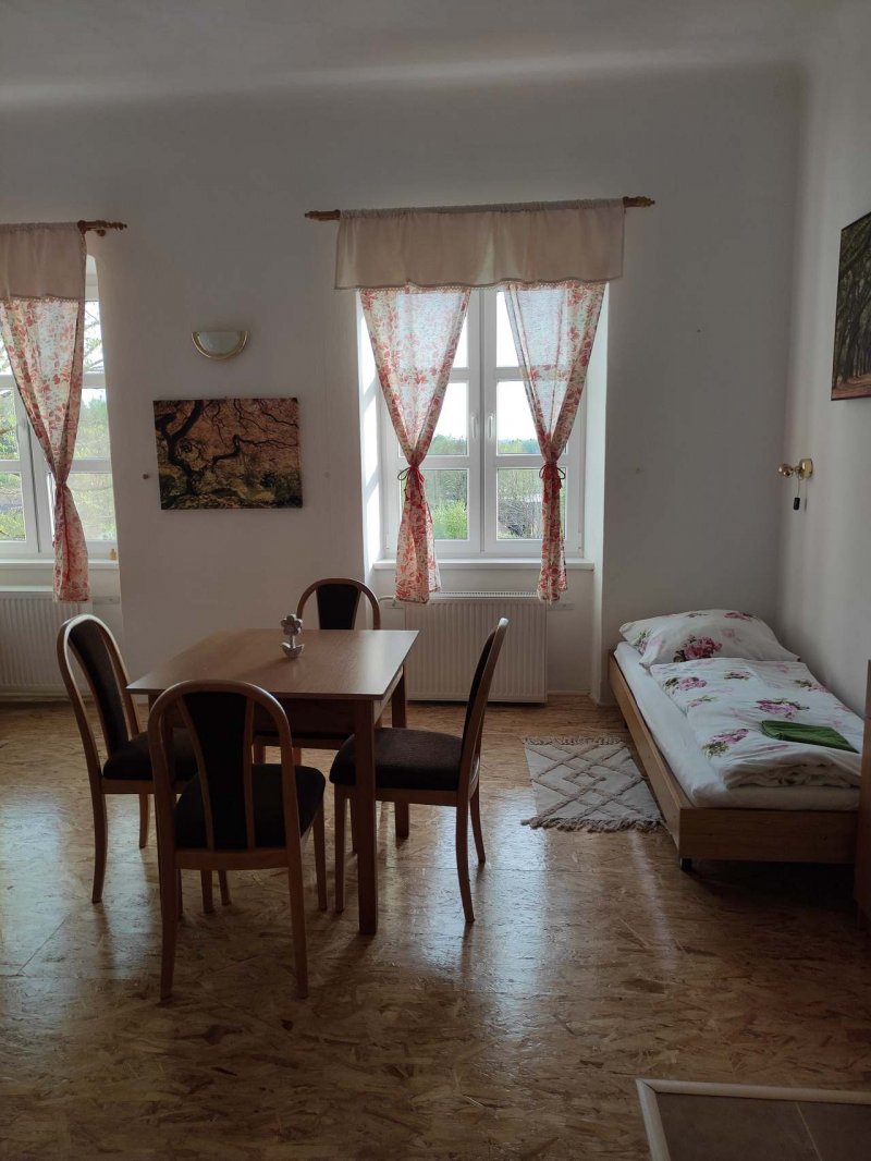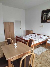 Pro ubytování máte k dispozici prostorné pokoje s vlastním sociálním zařízením (sprcha, WC) a vybavením včetně kuchyňského koutku (vařič, lednice, dřez, talíře, hrnky, příbory, pánve). Pokoje jsou vhodné i pro osoby s omezenou mobilitou, jsou bezbariérové a disponují dostatečným prostorem pro pohodlný pohyb. Penzion také nabízí bezbariérový přístup do všech částí penzionu, včetně zahrady, venkovní terasy a parkoviště.
