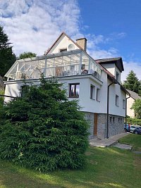 Apartmán v obci Karlova Studánka: 11 ložnic, celkem pro 1 až 60 osob. Orientační cena (za apartmán za noc): celoročně 2.500kč.