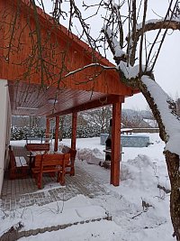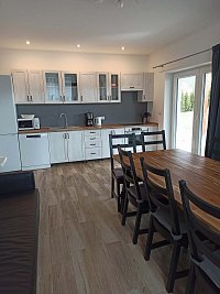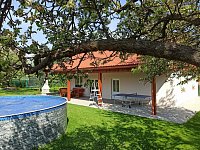 Objekt je moderně a plně vybaven a jeho součástí je prostorná krytá terasa s posezením a krbem a zahrada s bazénem a herními prvky pro děti.