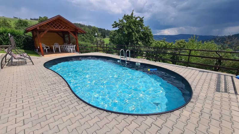 Penzion v obci Sklenařice: 4 pokoje, max. 10 osob. Orientační cena (za apartmán za týden): léto 11.000kč, zima 13.500kč.