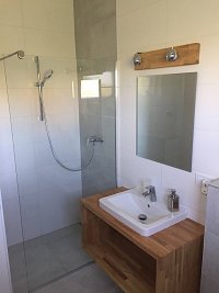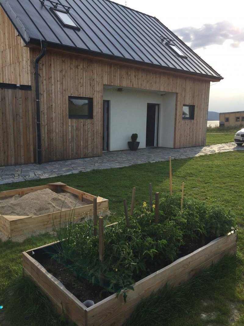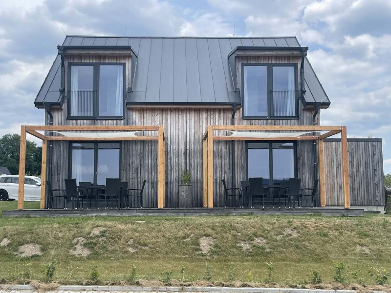 Nově postavený apartmánový dům v Kovářově u Frymburku se dvěma samostatnými apartmány, každý o dispozici 3kk (2samostatné ložnice, obývací pokoj s kuchyňským koutem). Společný skladovací prostor. Cena je uvedena vždy za 1 apartman. Maximální kapacita 16 osob je uvedena při pronájmu obou apartmánů - vhodné pro větší skupiny. Součástí domu je prostorná terasa s výhledem na vodní nádrž Lipno vzdálené 200 metrů s možností koupání a rybaření. Parkování je možné na zpevněném parkovišti před domem.