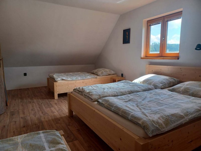 Chata v obci Seč-Hoješín: 3 ložnice, celkem pro 1 až 6 osob. Orientační cena (chata za týden): léto 16.000kč.