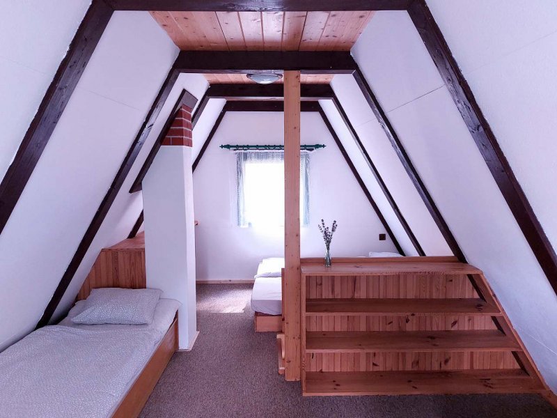 Chata v obci Kamenná Lhota: 3 ložnice, celkem pro 1 až 8 osob. Orientační cena (chata za týden): léto 8.000kč.