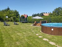 Chata je určena pro obsazenost do 7 lidí je obklopena velkým pozemkem s bazénem, stojí na klidném místě a je jen pár kroků od lesa. S ubytováním se současně nabízí možnost koupání, turistiky a dalších aktivit (tobogán,