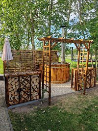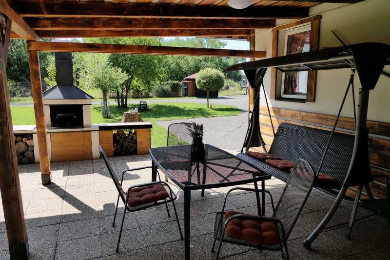 Nabízíme vám pronájem útulného mobilheimu 3 + KK s venkovní zastřešenou terasou a grilem. K mobilheimu je postavena přístavba, kde je další sedací souprava a velká lednice. Užijete si výhled do okolních lesů, kde vyženete každodenní starosti. Areál je obklopený lesy a loukami. Můžete se těšit na zážitkové koupání v sudu pod hvězdnou oblohou. Společnost vám budou dělat dva koníci s ovečkami a další zvířecí kamarádi.
