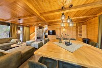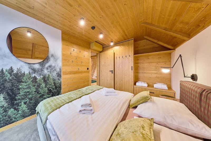 Čáp je plně klimatizovaný dvoupodlažní dům s bezbariérovým přístupem. Nabízí velkou společenskou místnost, hernu, venkovní posezení, vlastní celoročně vyhřívaný bazén se slanou vodou, hot tube a další venkovní vyžití pro děti. K dispozici je také technická místnost pro sušení oblečení, lyží i lyžařských bot, vybavená pračkou se sušičkou. Okolí domu je chráněno habrovým plotem, který poskytuje dostatek soukromí. Moderní, plně vybavená kuchyň v přízemí je ideálním místem pro společné vaření a setkávání u dobrého jídla. Podkroví domu patří dětem i dospělým, kteří se chtějí pobavit, zahrát si deskové či počítačové hry nebo si užít film na TV. Do herny se dá vyšplhat po horolezecké stěně, což nadchne malé i velké dobrodruhy. K dispozici jsou také sedací vaky a další útulná zákoutí, kde si můžete vychutnat klid s oblíbenou knížkou.