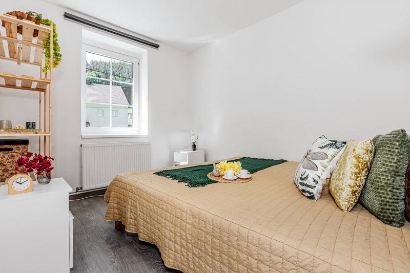 Apartmán v obci Rejštejn: 1 ložnice, celkem pro 1 až 2 osoby. Orientační cena (apartmán za noc): celoročně 2.250kč.