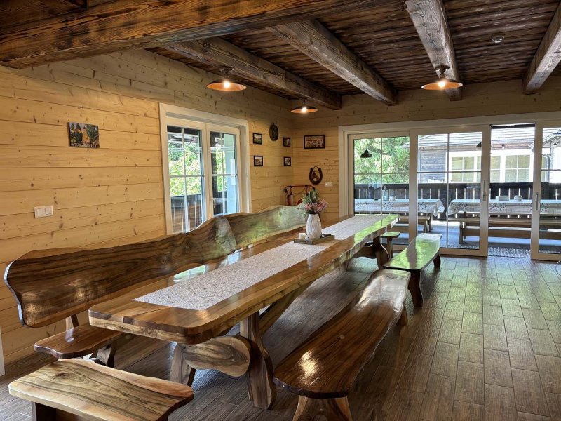 Naša chatka je ideálnym miestom pre nezabudnuteľný pobyt až pre 18 osôb. Každá izba je komfortne zariadená a vybavená vlastnou kúpeľňou, čo zabezpečí vaše pohodlie a súkromie. K dispozícii máte aj saunu, vírivku a bazén, ktoré sú skvelým miestom na relax po celodenných aktivitách. Srdcom chatky je priestranná spoločenská miestnosť, kde si môžete užiť večery s priateľmi. Okolitá príroda vám ponúka krásne horské scenérie a množstvo možností na turistiku či outdoorové aktivity. Ideálne pre rodinné oslavy, firemné akcie či víkendový pobyt s priateľmi. Naša chatka je oázou pokoja a pohodlia v srdci hôr. Využite možnosti na oddych aj aktívny oddych v jednom z najkrajších prostredí Slovenska.