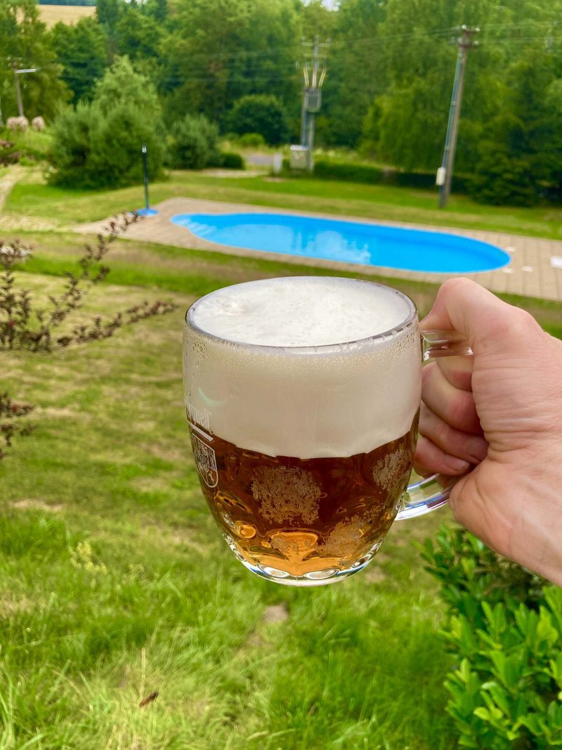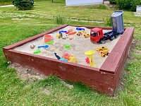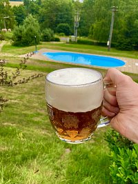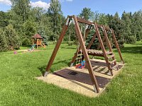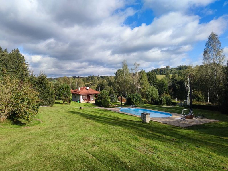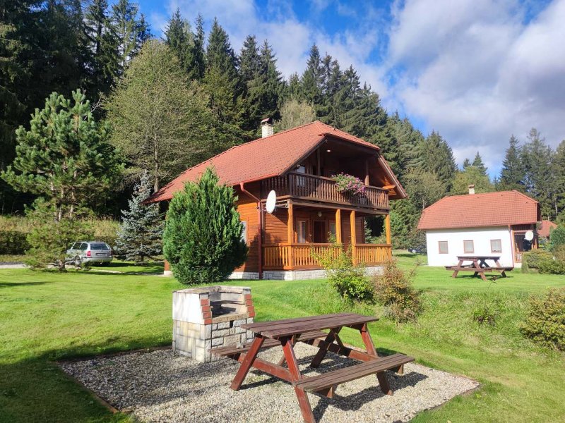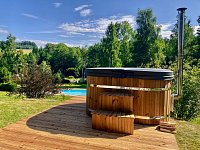 Rodinná chata s koupacím sudem, bazénem a vyžitím pro děti.