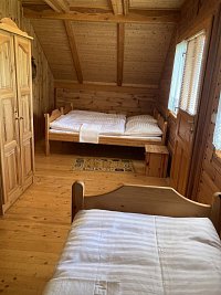 Chata v obci Dolní Bušínov: 5 ložnic, celkem pro 10 až 16 osob. Orientační cena (chata za týden): léto 35.000kč.