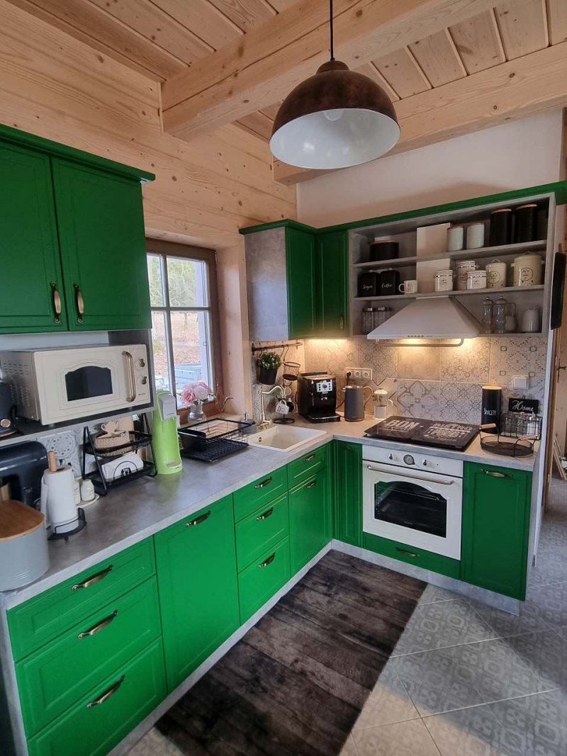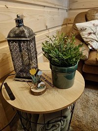 Nově vybudovaná stylová roubenka ve velmi klidné části Jeseníků s výhledem na masiv Kralického Sněžníku. Lokalita je obklopena horami, na které je krásný výhled, protože se nachází v horní části Habartic - na náhorní plošině.