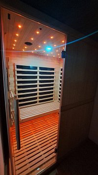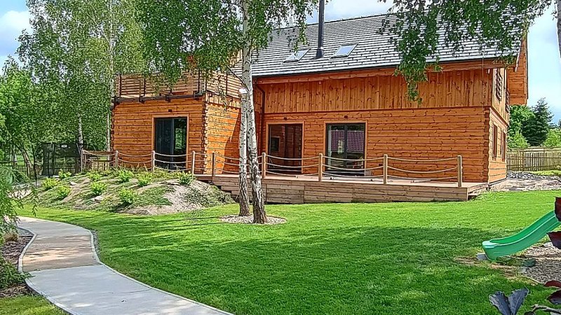 Děti se mohou těšit na dva herní koutky uvnitř domu, venkovní dětské hřiště se skluzavkou, pískoviště, trampolínu, lanový park, multifunkční hřiště (skákací panák, tenis, fotbal) a malé dopravní hřiště s vybavením přímo na zahradě :). Vyhřívaný bazén 4,5m x 2,5m, hloubky 1m je zabudovaný přímo pod terasou.