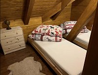 Chata v obci Dolní Lomná: 3 ložnice, celkem pro 3 až 7 osob. Orientační cena (chata za noc): celoročně 1.500kč.