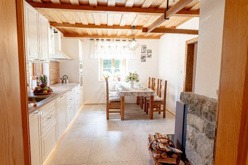 Stylová dřevěná roubená chalupa prošla nedávnou rekonstrukcí přízemí, díky níž získala moderní pohodlí při zachování svého tradičního kouzla. Nachází se na okraji Letohradu, přímo u řeky Tichá Orlice. Prostorná zahrada s přilehlou loukou nabízí dokonalé místo pro odpočinek i zábavu – dospělí ocení relaxaci v přírodě, zatímco děti si užijí volný prostor ke hrám.