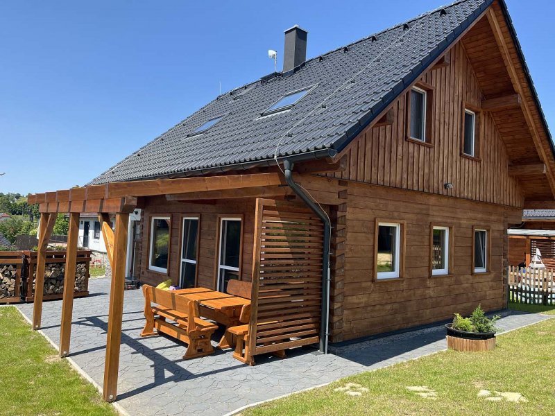Vítejte v nově postavené, moderně vybavené roubené chalupě s kapacitou až pro 12 osob, která se nachází v klidné lokalitě na okraji CHKO Žďárské vrchy, jen pár minut od Nového Města na Moravě. Chalupa nabízí dokonalou kombinaci tradičního designu s luxusním vybavením včetně bazénu a wellness zóny s finskou saunou a koupacím sudem. Bazén a wellness zóna je společná pro 4 roubenky.