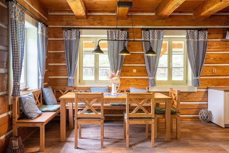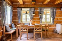 Chráněné krajinné oblasti. Roubenka má čtyři ložnice – pohodlné spaní pro celý pobyt + světnici s kachlovým krbem, dále pak garáž pro až 10 elektrokol, wallbox pro nabíjení elektroauta a také moderní vybavení pro Váš komfort (myčka nádobí – žádné starosti s úklidem po jídle, kávovar pro dokonalý start dne, promítací plátno s projektorem, oplocený pozemek s parkováním – soukromí a bezpečí, exteriér chráněný kamerovým systémem, zakrytá terasa – relaxace za každého počasí s místem pro opékání.
