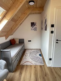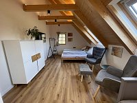 Pro rodiny s dětmi je možnost užití hraček. Pro ty nejmenší dítka jsme schopni připravit 2 dětské postýlky. Pejsci jsou vítáni, jen není dovoleno, aby byli v patře. Pro bezpečí dětí i mazlíčků je instalována ohrádka u schodiště. Hostům nabízíme i možnost zakoupit na místě naše vlastní jablečné mošty, cider a víno značky Joyda Cider – za zvýhodněnou cenu oproti e - shopu. Při pobytech delších 6 nocí zpřístupníme také pračku a sušičku. V případě zájmu i u kratších pobytů je účtován jednorázový poplatek 500Kč.