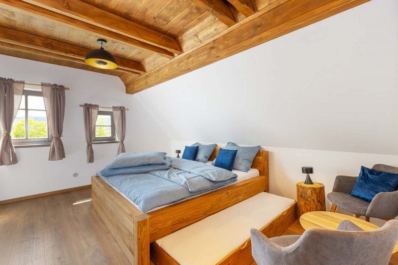 Místo, kde čas zpomalí. Roubenky Vojtíškov - Pomněnka Vám nabídne luxusní útočiště v podhůří Kralického Sněžníku a v blízkosti Dolní Moravy. Nově postavená roubená chalupa na mírně svažitém pozemku je v provozu od února 2025.Dřevěná krása a klasické prvky se snoubí s moderními technologiemi a zařízením. Roubenka nabízí krásné výhledy a sluníčko po celý den díky jihozápadní orientaci. Vesnička Vojtíškov (620m. n. m. ) spadá pod obec Malá Morava. Je to klidné místo nezatížené turistickým ruchem a perfektní místo pro rodinné oslavy, teambuldingy, setkání s přáteli nebo pro sportovní nadšence.