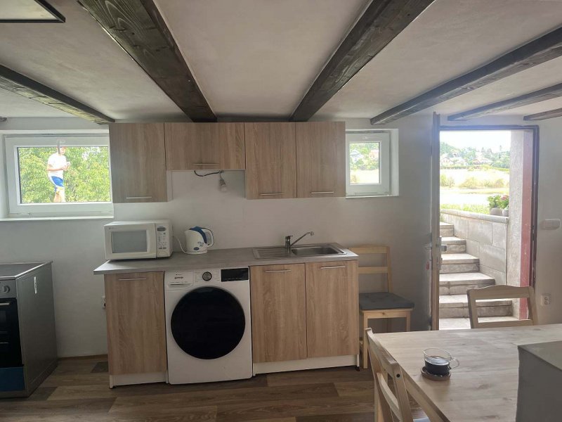 Apartmán nabízí dvě pohodlná lůžka (včetně povlečení), moderní koupelnu s ručníky a veškerým základním vybavením. Nachází se jen 100 metrů od rybníka Papež, kde je možné rybařit (s platným povolením). Okolí je ideální pro cyklistiku a pěší výlety. Zámek Dobříš s restaurací je vzdálen pouhých 5 minut chůze. V pěší dostupnosti (5–10 minut) se nachází několik obchodů – Lidl, Penny a Coop. V okolí je mnoho hradů a zámků a Praha je dostupná do 30 minut jízdy.