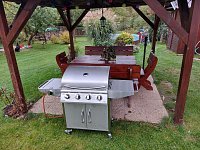 Chalupa Samota Ústí (U Jiříků) stojí na samostatném oploceném pozemku o velikosti cca 2500m². Kolem objektu je velký pěkně upravený zatravněný pozemek, na kterém mohou klienti využít venkovní posezení pod pergolou, saunu, přenosný gril, velkou houpačku pro dvě osoby, ruské kuželky, zahradní sprchu, přírodní ohniště a nadzemní bazén s pískovou filtrací - 3,6m. Pro děti je připravena trampolína, skluzavka, různé houpačky, dětský domeček a pískoviště včetně hraček. Na oplocené zahradě je možnost postavení stanů. Velká travnatá plocha je vhodná k příjemnému odpočinku a je ideálním místem pro ubytování se psy či jiným domácím mazlíčkem. Chalupa sousedí pouze s jedním stavením.