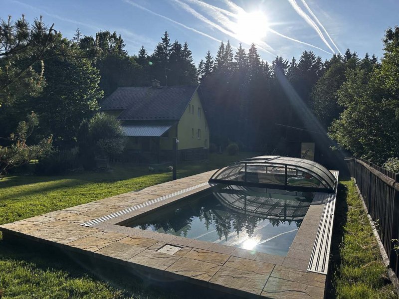 Nabízíme chalupu k pronájmu na samotě v obci Míšov (650m. n m), která je vyhledávaným místem pro start výletů. Naše chalupa leží na cyklotrase pod hřebenem Třemšín (827m. n m) - Nad Maráskem (801m. n m). Ideální místo pro sportovce a rodiny s dětmi. Máme velikou udržovanou oplocenou zahradu s krytým bazénem, finskou sudovou saunou a hřištěm pro děti. Garáž slouží jako kolárna až pro 20 kol a lyžárna.