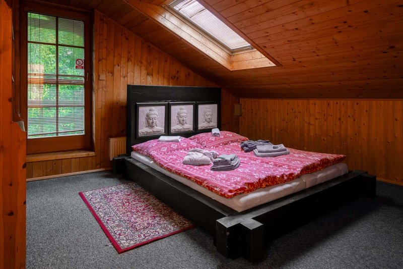 AKCE! Nyní týdenní pobyt v zimní sezoně za cenu mimosezony 19 800,- Kč. Možno objednat i pouze víkend. Rekreační wellness srub SAMSARA - Family friendly. K užití venkovní sauna, finská káď, masážní stůl - family friendly. Srub je vhodný nejen na rekreaci a wellness pro rodiny s dětmi, sportovce, seniory, ale i zaměření svou tématikou k východní filosofii pro kurzy, relaxaci a meditaci. Pronájem chaty v klidné části Trutnova, vzdálena 2km po cyklostezce od rekreační oblasti Dolce, která je tvořena soustavou 5 - ti kaskádovitě umístěných rybníků. Kde je travnatá pláž a molo. Zde je také možnost sportovního vyžití. 15km Ski areál Černá hora, stezka v korunách stromů. 20 km Ski Pec pod Sněžkou, Sněžka. 10km, Adršpašské a Teplické skály 20km. Můžeme zajistit zkoušku nebo výuku lezení u Ádr academy. 15km možnost i u nás jet vodu. Zajistíme u www. jedu labe. cz Ze Dvora Králové n/L do Kuksu. 10km pevnost Stachelberg, 5km Sniper valley. Možnost výletů do okolí, rybaření, houbaření. V objektu je tantra ložnice Shiva Shanti. Nedaleko srubu je množství ski areálů, bruslařská stezka, běžkařské trasy, cyklostezky a velký cyklotrail.