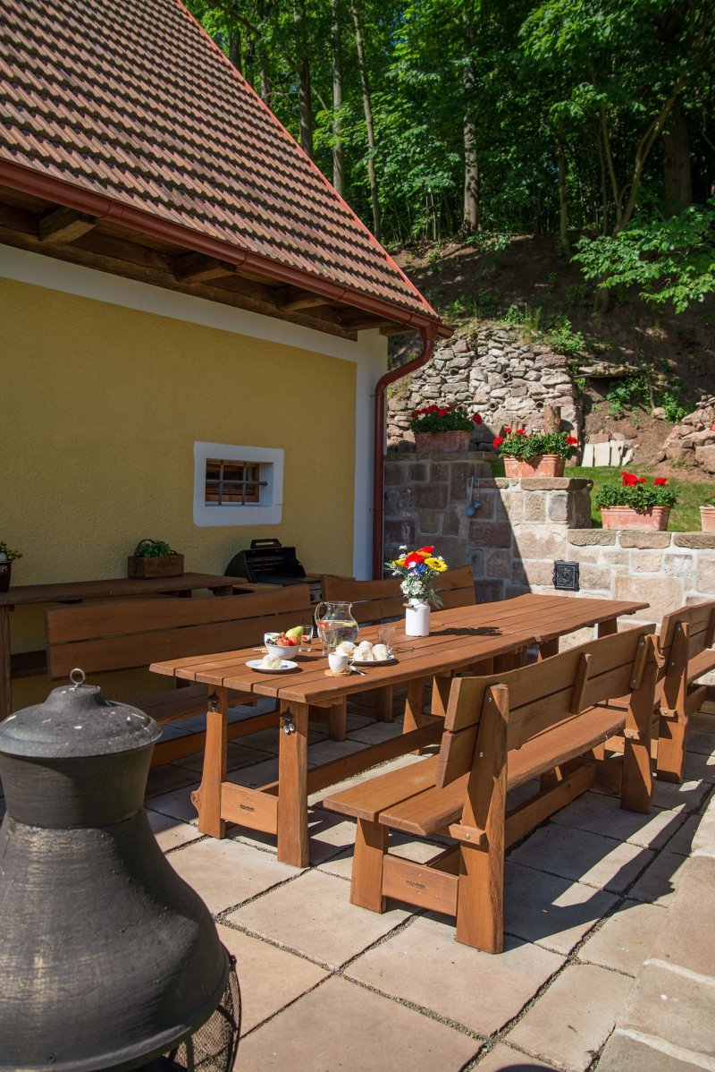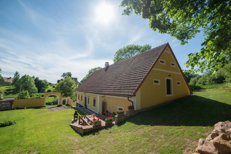 Nově zrekonstruovaný přes 160 let starý broumovský klasicistní statek Melchior Häusler se nachází v klidné lokalitě malé vsi. Nabízí ubytovací kapacitu až pro 13 lidí s možností přidání 2 dětských postýlek. Na uzavřeném slunném dvoře se nachází terasa a pod okny teče úzký potůček. Dům je situován stranou od asfaltové cesty a vzadu je obklopen loukami a lesem. Pokud je Vás méně, můžete si pronajmout pouze část statku - v objektu budete ale vždy sami: [https: //www. e - chalupy. cz/vychodni_cechy/pronajem - selske - staveni - melchior - hausler - sonov - ubytovani - 11166.php].
