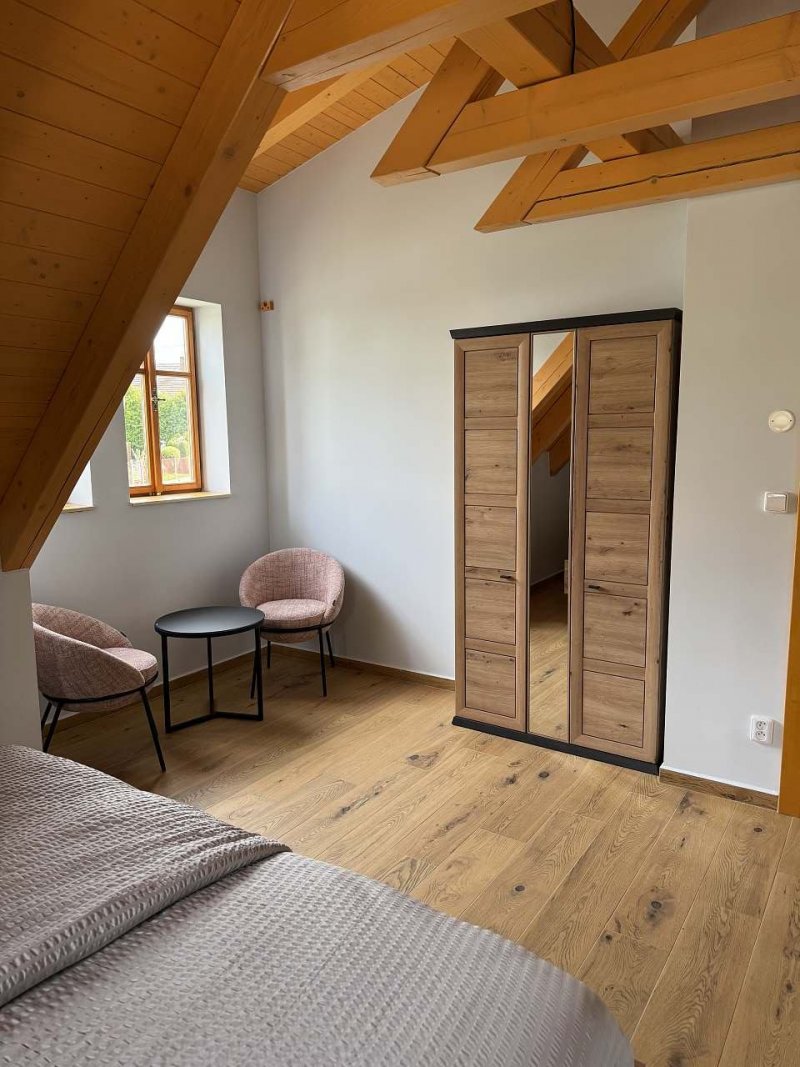 Apartmán v obci Dvůr Králové nad Labem: 3 ložnice, celkem pro 2 až 10 osob. Orientační cena (za apartmán za týden): léto 14.000kč.