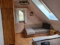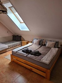 Kvalitní a cenově příznivé ubytování v podkroví rodinného domku v turistické oblasti Třeboňsko, se samostatným vchodem po venkovním zastřešeném schodišti.